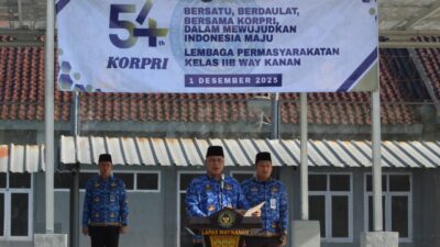 WAY KANAN-Sebanyak 142 orang Pengawas Tempat Pemungutan Suara (PTPS) Kecamatan Blambangan Umpu, Kabupaten Way Kanan dilantik di aula Kampung Umpu Bhakti, Senin (16/11/2020).