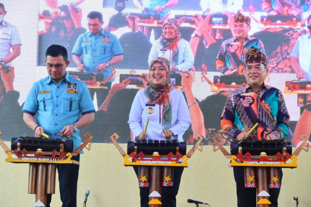 BANDAR LAMPUNG-Wakil Gubernur (Wagub) Lampung, Chusnunia membuka Puncak ‘Gawi Budaya Lampung’ Pekan Kebudayaan tahun 2022, di Area Dewan Kesenian Lampung Komplek PKOR Way Halim, Kamis (29/09/2022).