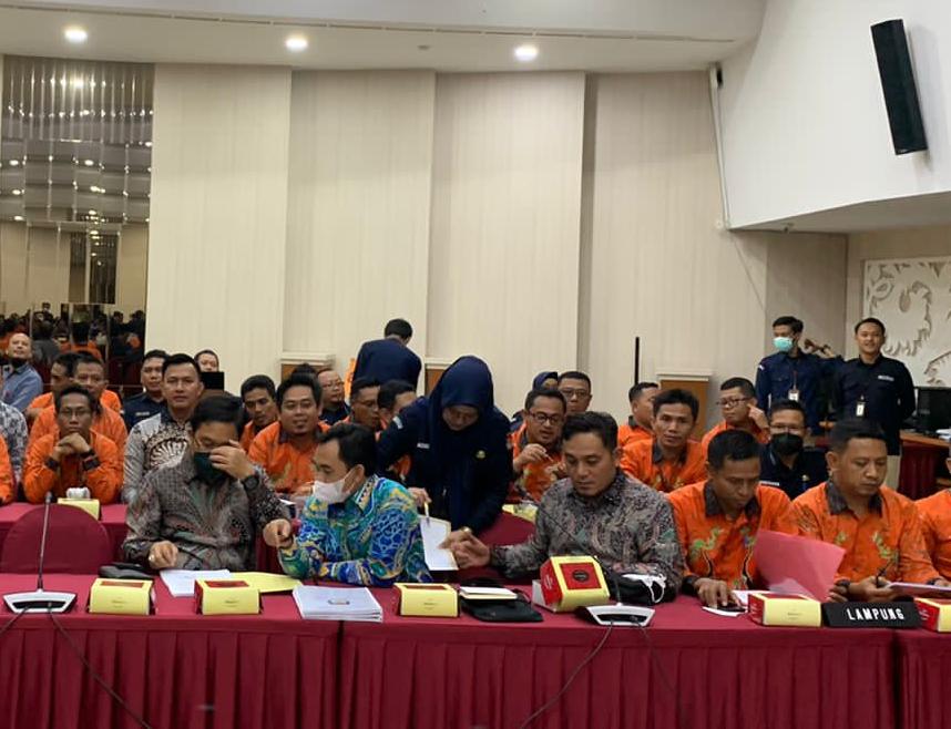 JAKARTA-Komisi Pemilihan Umum (KPU) Provinsi Lampung bersama KPU Kabupaten Pesawaran, melakukan kunjungan ke KPU RI terkait pemekaran empat desa yang ada di Kabupaten Pesawaran, di Aula KPU RI Jakarta Pusat, Selasa (08/11/2022).