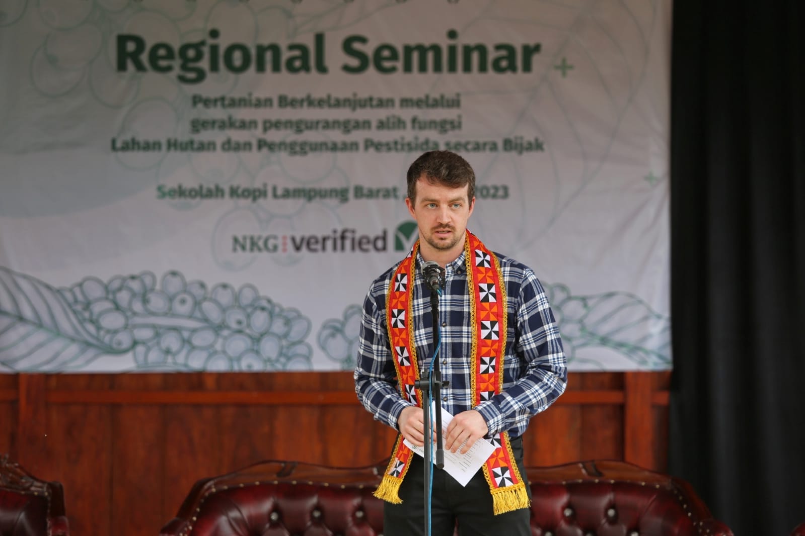 “Saya ucapkan terimakasih kepada Pemerintah Kabupaten Lampung Barat yang sudah menyambut baik atas terselenggaranya kegiatan ini. Saya melihat kabupaten Lampung Barat ini memiliki potensi yang cukup tinggi khususnya di bidang perkebunan kopi,” Kata pria kewarganegaraan asing tersebut.