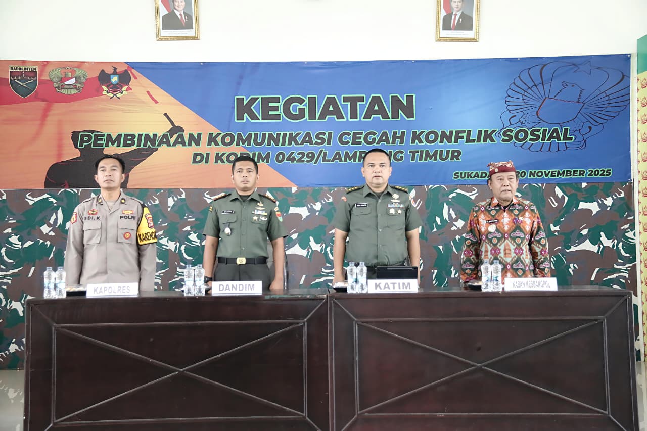Seperti halnya yang dilaksanakan oleh Kodim 0429/Lamtim yang menggelar kegiatan Pembinaan Komunikasi (Binkom) cegah konflik sosial, yang berlangsung di Aula Gatot Subroto Makodim, Kamis (20/11/2025).
