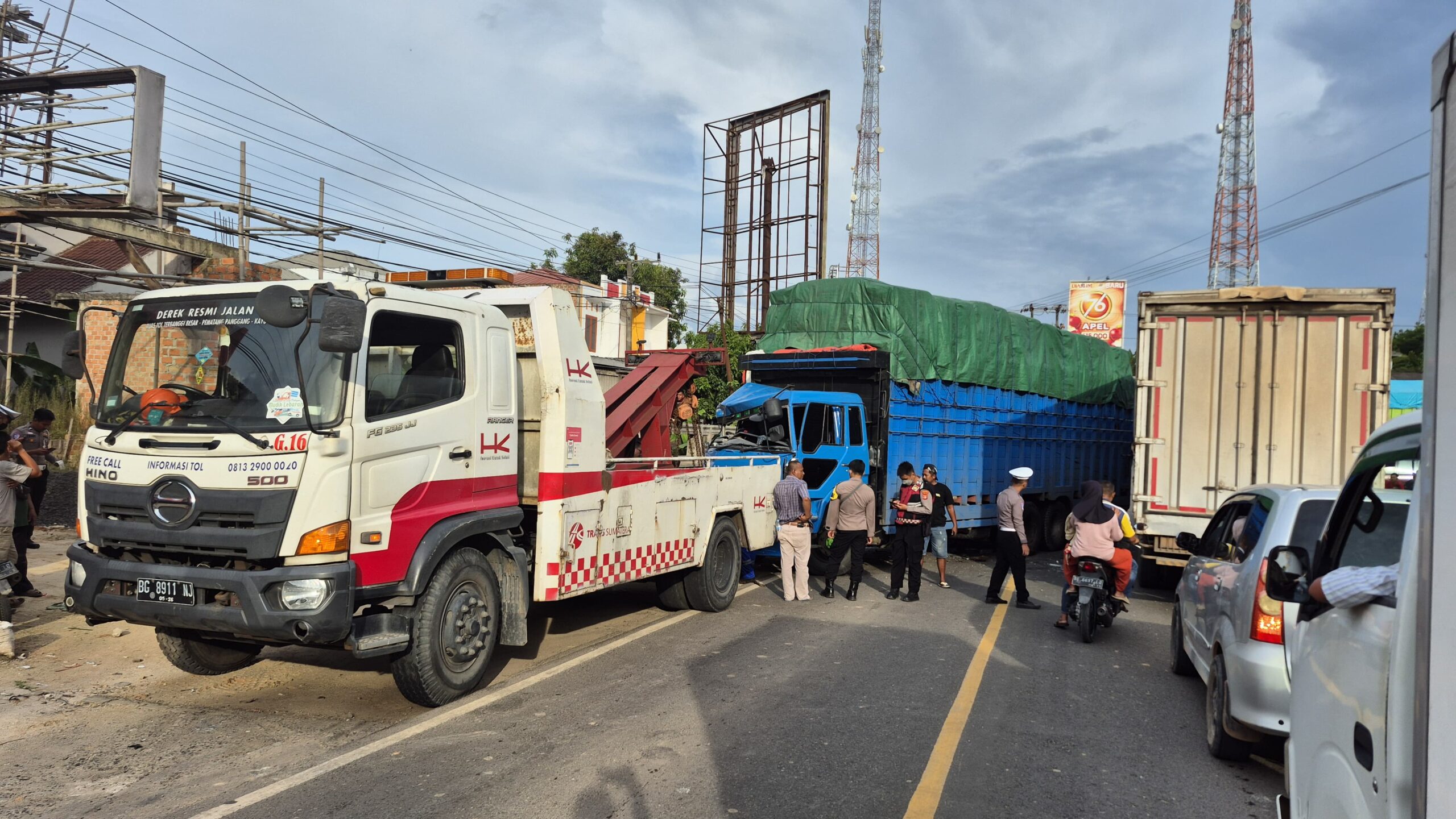 MESUJI- Jajaran Sat Lantas Polres Mesuji evakuasi tiga kendaraan yang mengalami kecelakaan lalu lintas di jalur utama Jalan Lintas Timur (Jalintim) kilometer 180, tepatnya di simpang Marbun, Desa Simpang Pematang, Kecamatan Simpang Pematang, Kabupaten Mesuji,pada jumat (28/11)
