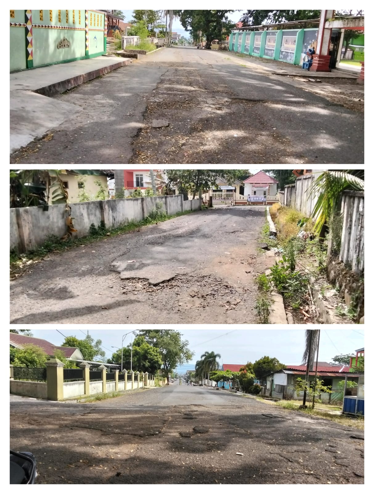 Pantauan warga di Kelurahan Kuripan menunjukkan kerusakan mencolok di sekitar Lapangan Merdeka—lokasi yang berdekatan dengan rumah dinas wakil bupati dan sekretaris daerah. Ruas ini merupakan akses utama menuju Puskesmas Kotaagung, sekolah-sekolah (SD, SMP, MTs), taman kota, hingga markas Koramil.
