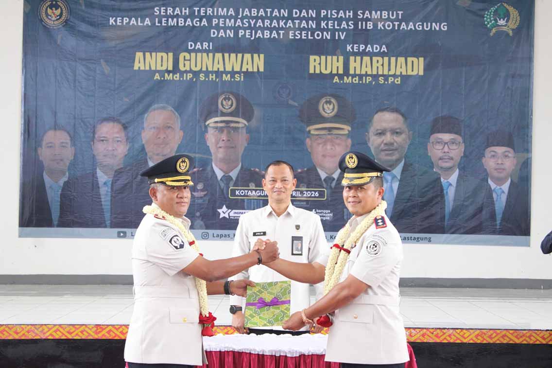 Tanggamus – Lembaga Pemasyarakatan (Lapas) Kelas IIB Kotaagung menggelar acara Serah Terima Jabatan (Sertijab) dan Pisah Sambut Kepala Lapas dari Andi Gunawan, A.Md.IP., S.H., M.Si., kepada pejabat baru Ruh Harijadi, A.Md.IP., S.Pd.
