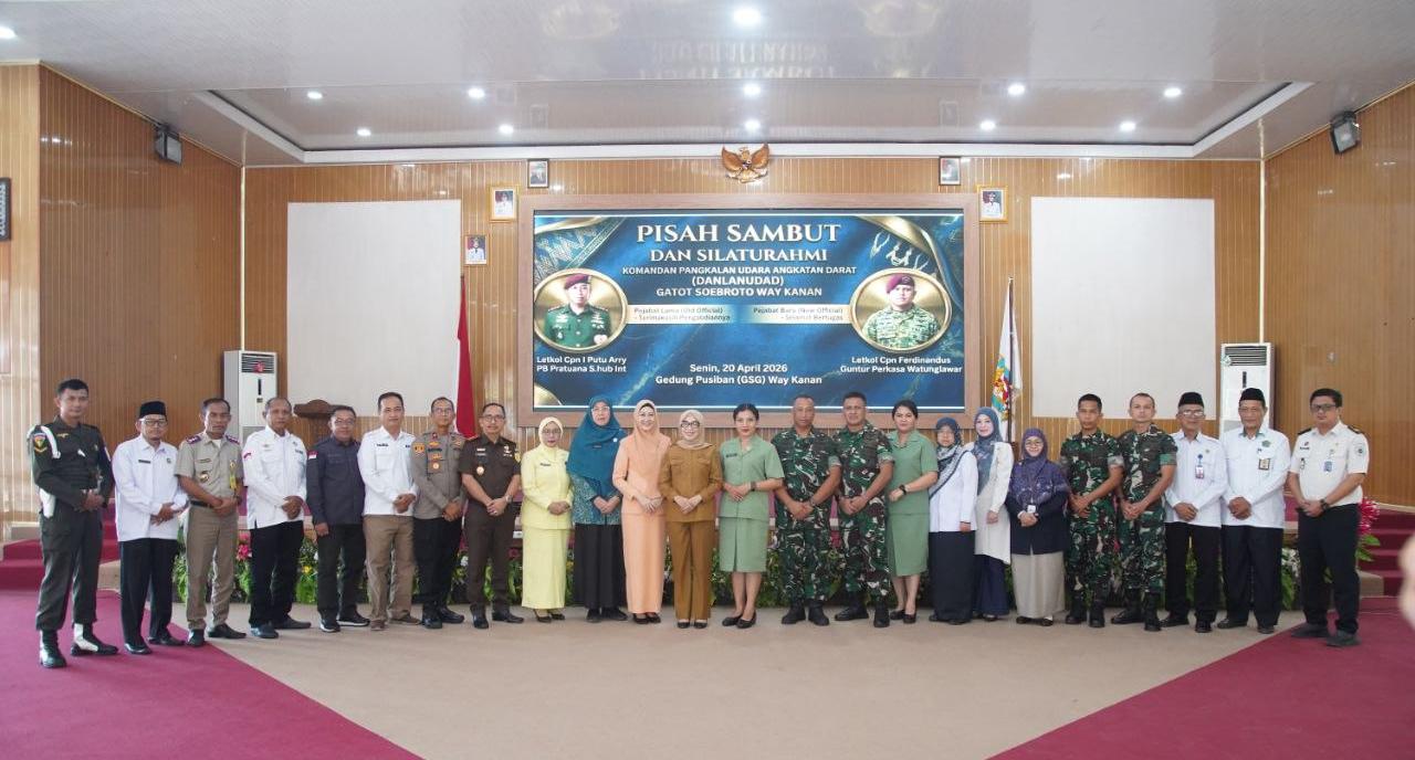Way Kanan – Pemerintah Kabupaten Way Kanan Pisah Sambut Komandan Lanudad Gatot Soebroto Way Tuba di Gedung Pusiban, Pemkab Way Kanan. Senin, (20/04/2026).